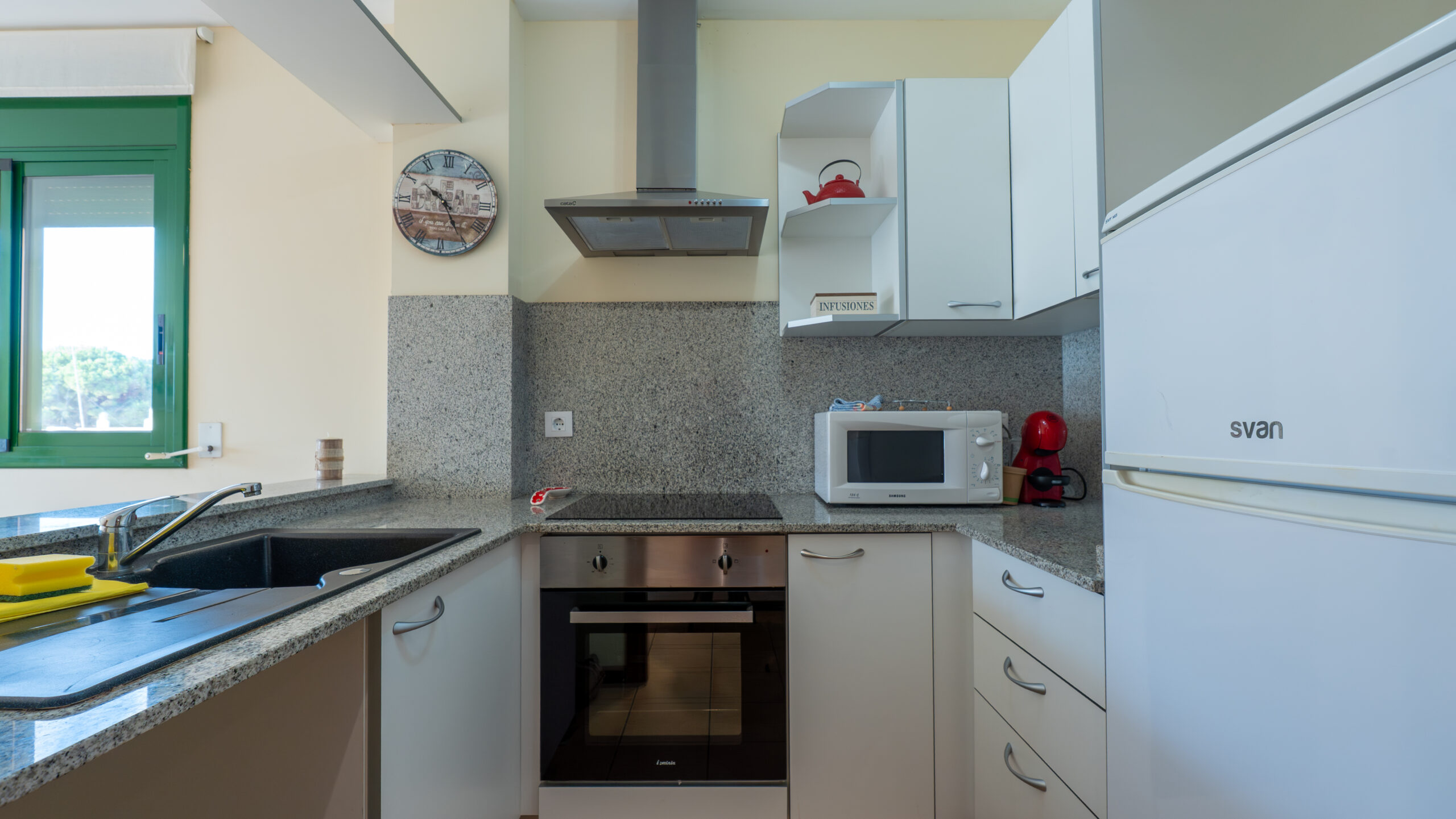 Ubicado en el encantador entorno de Eucaliptus, en Amposta, y a solo unos pasos de la playa, este acogedor apartamento está diseñado para ofrecerte una estancia cómoda, práctica y relajante, perfecta para disfrutar del entorno natural del Delta del Ebro. El apartamento cuenta con dos habitaciones: una con una cama de matrimonio ideal para el descanso de una pareja, y otra habitación con dos camas individuales, perfecta para niños o amigos. Todas las camas están equipadas con sábanas limpias y suaves, listas para tu llegada. Para mayor comodidad, el apartamento incluye toallas de baño, un secador de pelo, y una cocina completamente equipada con cafetera, tostadora y menaje básico, para que puedas preparar desde un desayuno sencillo hasta una comida completa sin complicaciones. Uno de los espacios más agradables del apartamento es su balcón, donde encontrarás una mesa perfecta para disfrutar de comidas al aire libre, tomar un café por la mañana o relajarte al atardecer sintiendo la brisa marina. La ubicación es ideal: a pocos minutos caminando te encontrarás con la playa, tranquila y de aguas poco profundas, rodeada de naturaleza, perfecta para desconectar y respirar la calma del Delta. Este apartamento es una excelente opción tanto para familias como para grupos pequeños que buscan un alojamiento cómodo, bien equipado y cerca del mar en uno de los rincones más tranquilos y auténticos de la costa catalana.